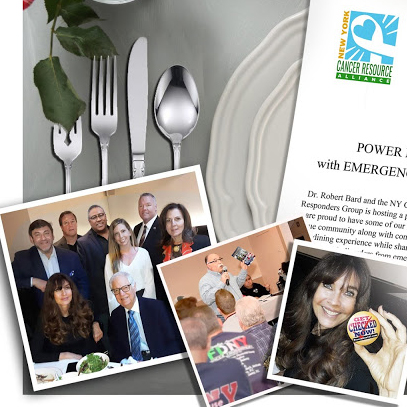 Community Leadership Power Meeting for First Responders Health Concerns- PILOT POWER-LUNCHEON MEETING #1 marked the first coordinated assembly of community-minded New Yorkers brought together to discuss the major concerns relating to public health and wellness among first responders. This conference pilot was produced by the NY Cancer Resource Alliance or NYCRA (a health education-based LINKEDIN group) and sponsored by AngioFoundation director Dr. Robert L. Bard. Other main guests included Director of Medical Operations /NY State Trooper Surgeons PBA MICHAEL BROOKS (Albany, NY) and Mrs. Mary Paterson, supporter of NY rescuers and wife of the 55th NYS Governor David Paterson. Both were invited because of their state government perspectives which opened wider insight and resource information about healthcare challenges of state and city government safety workers. The next speaker was celebrity wellness author and producer CAROL ALT who graced the discussion with her vast experience in Prevention and Early Detection alongside her life-long support for the FDNY. Meanwhile, on the healthcare side was leading cancer diagnostic specialist DR. ROBERT BARD, NYCRA mental health advisor JESSICA GLYNN, LCSW and physician DR. GEORGE LIAKEAS (provider of IvyGene cancer blood testing in NYC)- chosen for their clinical perspectives on clinical matters. Together, they formed the first Round Table Leadership Collaboration group. (SEE ARTICLE LINK)